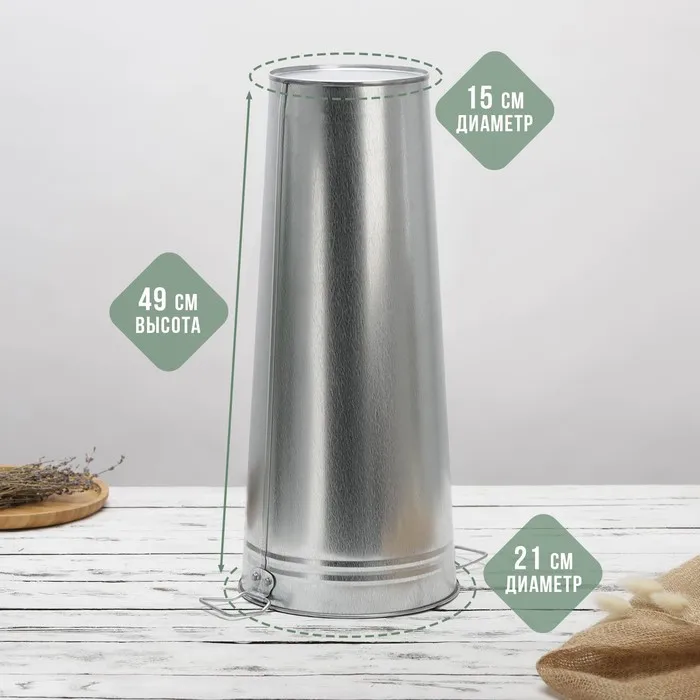Вазон оцинкованный с ручками, 11 л, d=21 см, h=49 см, ГОСТ — Характеристики