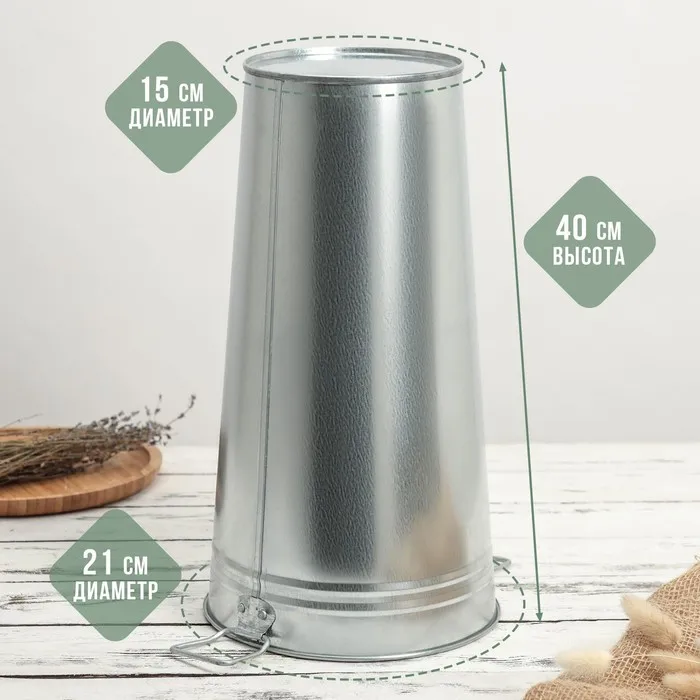 Вазон оцинкованный с ручками, 9 л, d=21 см, h=40 см, ГОСТ — Характеристики