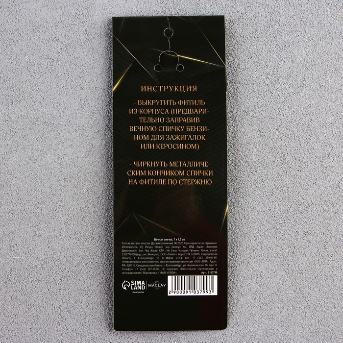 Чтобы высечь искру, достаточно чикнуть наконечником стержня по магниевой полосе, расположенной на корпусе спички, после чего фитиль будет гореть в течение 10-15 секунд.
