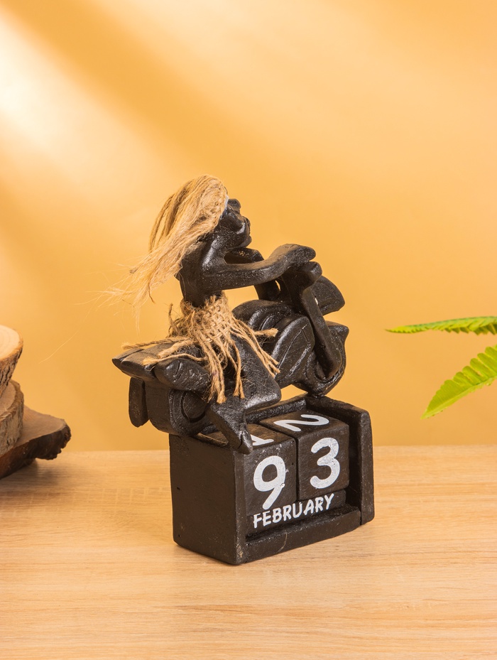 Вечный календарь «Абориген на мотоцикле», 20×16×9 см, дерево