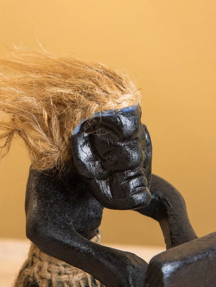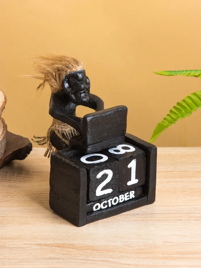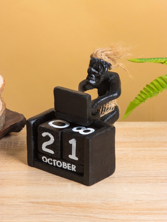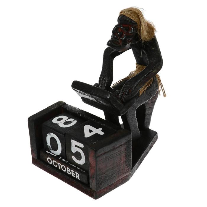Вечный календарь «Абориген с компьютером», 15×11×10 см, дерево