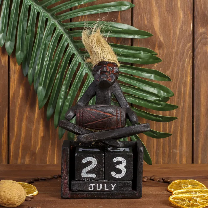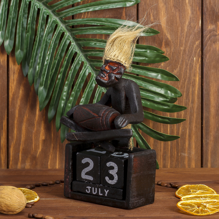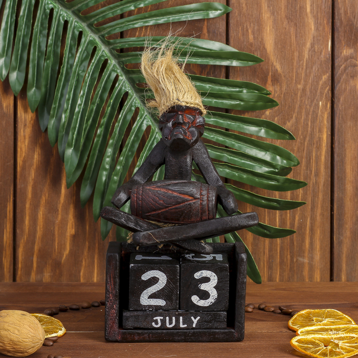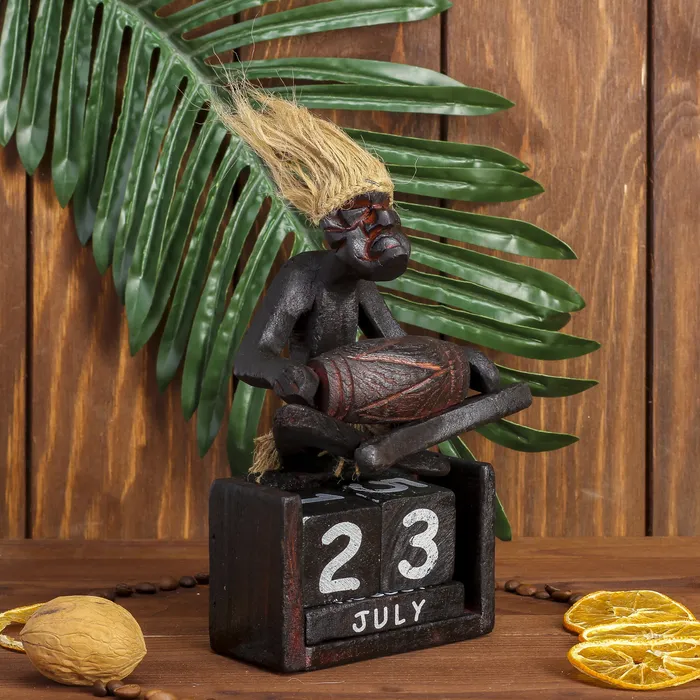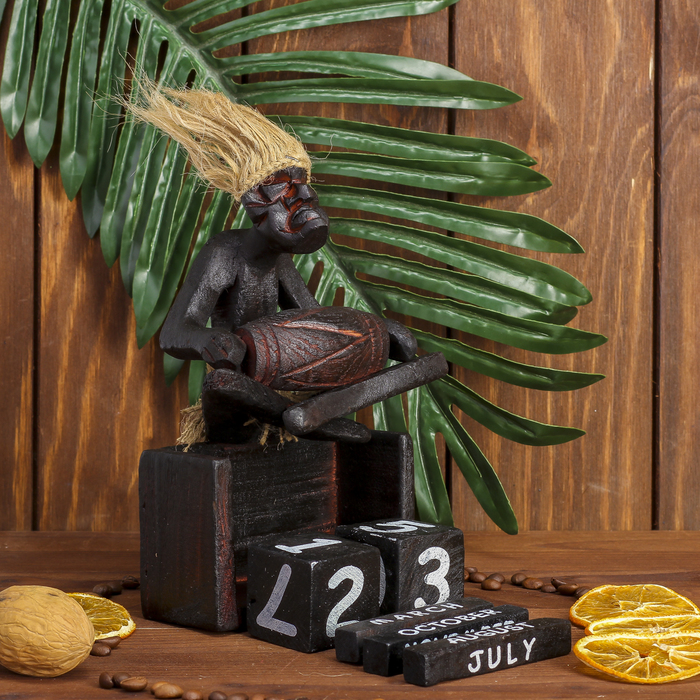 Вечный календарь «Абориген сидит с барабаном», 19×11×5.5 см, дерево — Характеристики