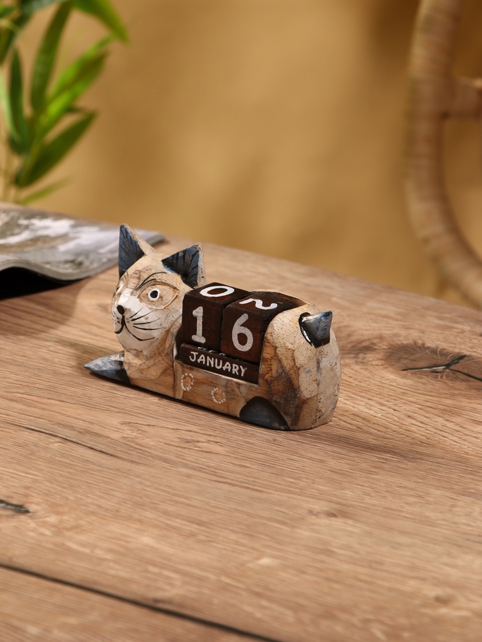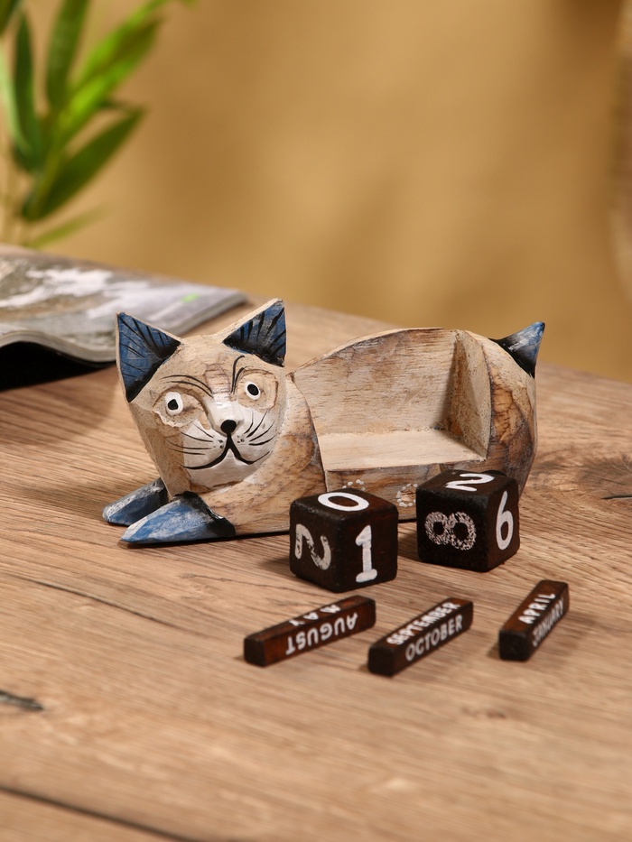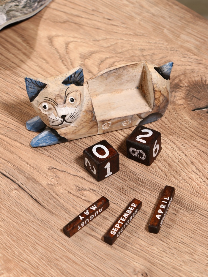 Вечный календарь «Кошка», 13×4×6.5 см, дерево — Характеристики