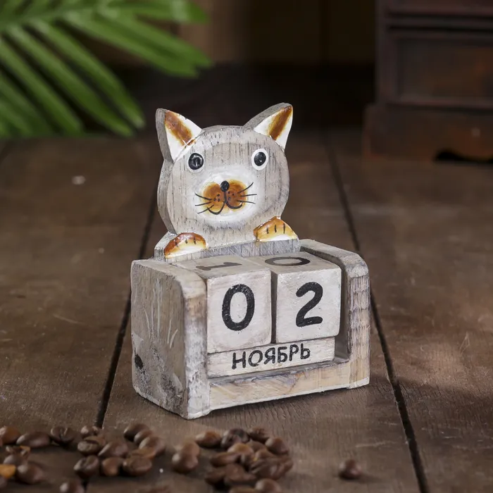 Вечный календарь «Кошка», 7×4×10 см, дерево — Характеристики
