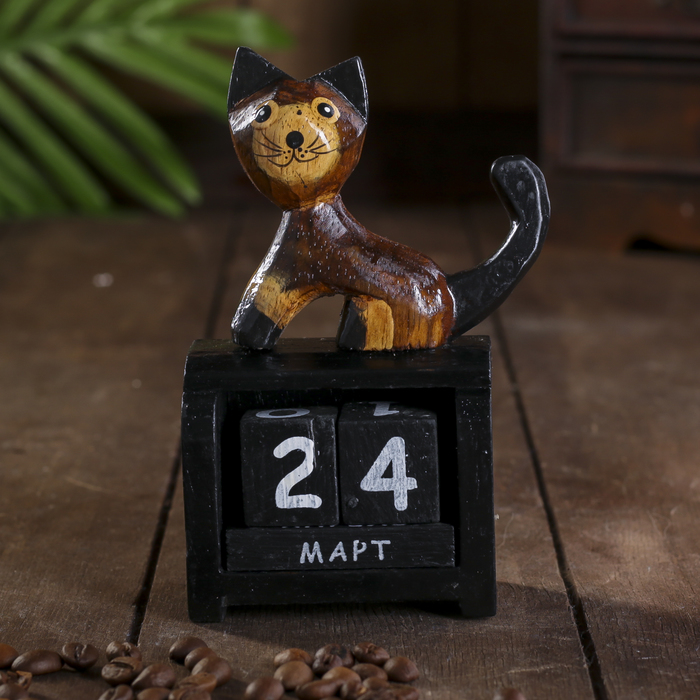 Вечный календарь «Кошка», 13×4×6.5 см, дерево
