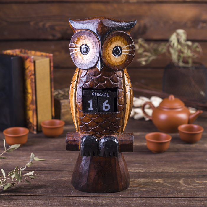 Вечный календарь настольный «Сова», 5×10×28 см, дерево — Характеристики