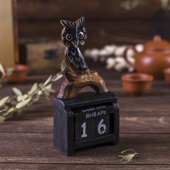 Вечный календарь настольный «Сова», 7×3.5×14.5 см, дерево