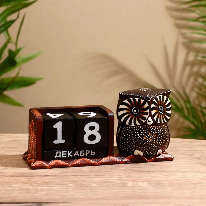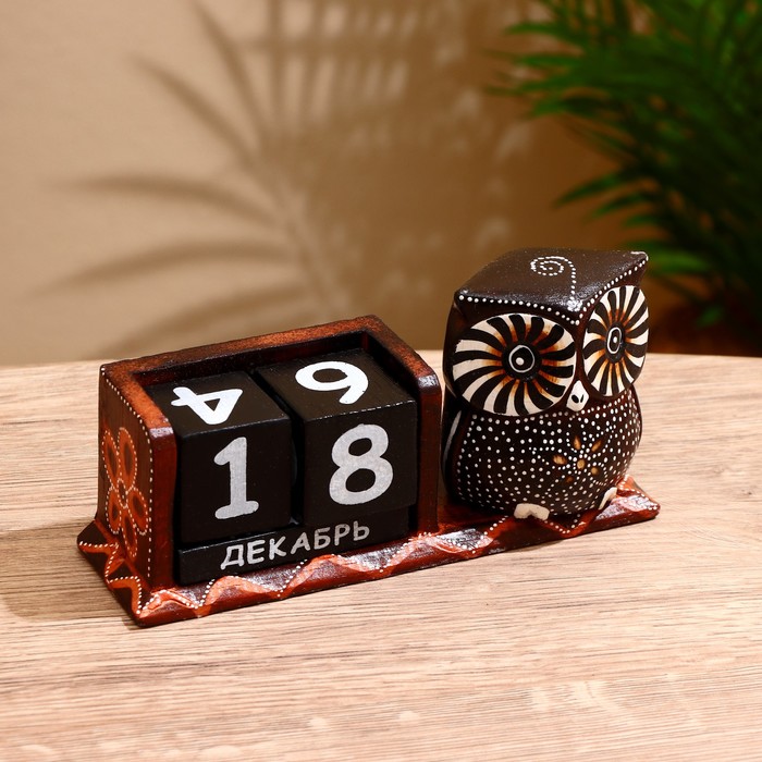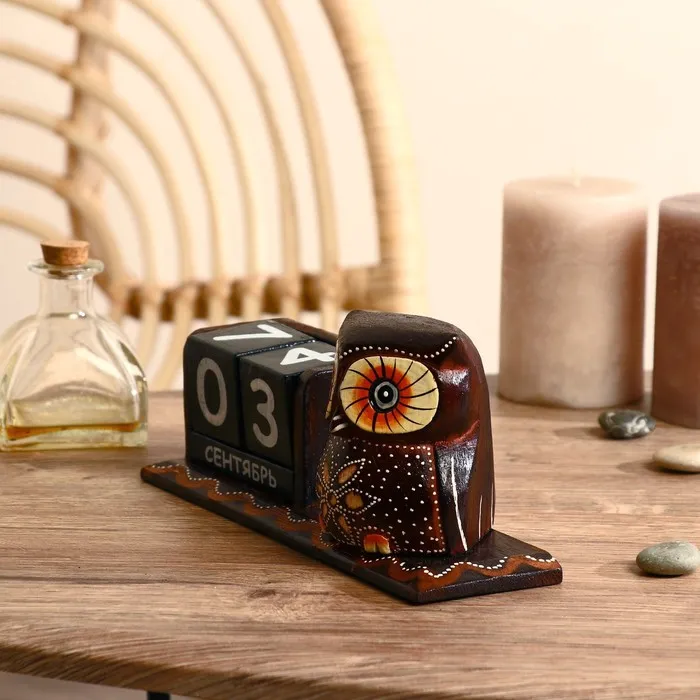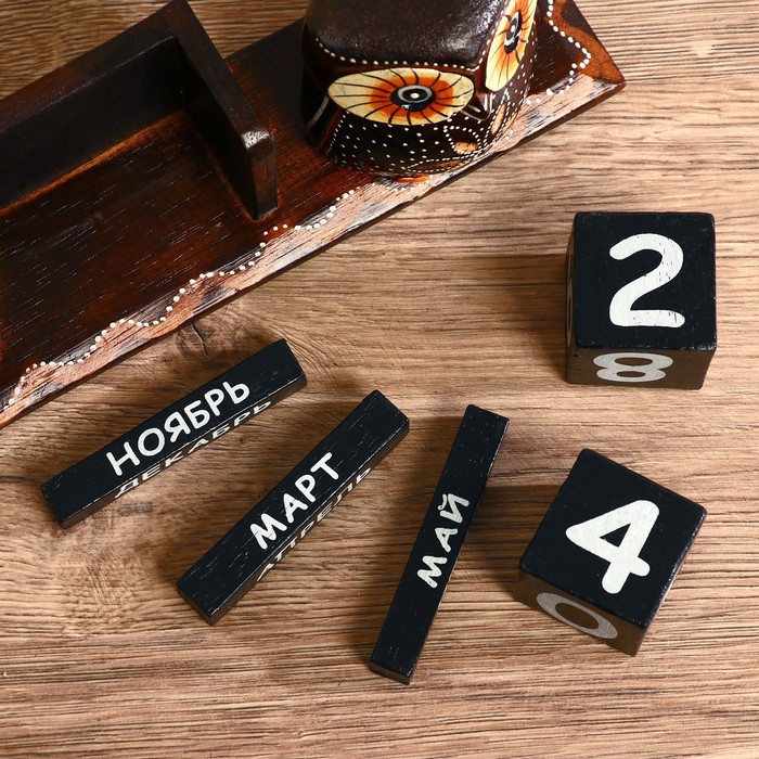 Вечный календарь настольный «Сова красавица», 22×7×11 см, дерево, МИКС — Характеристики