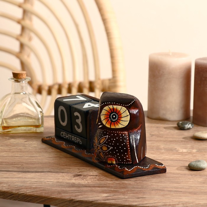 Вечный календарь настольный «Сова красавица», 22×7×11 см, дерево, МИКС