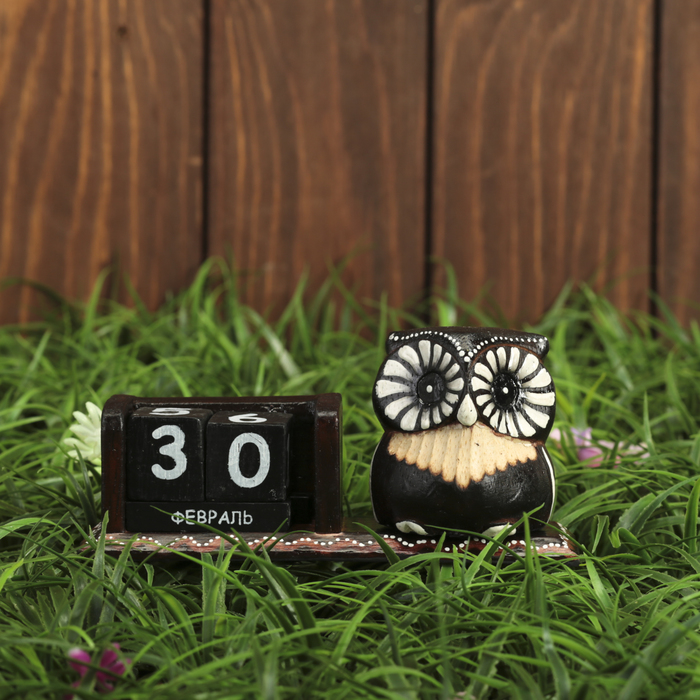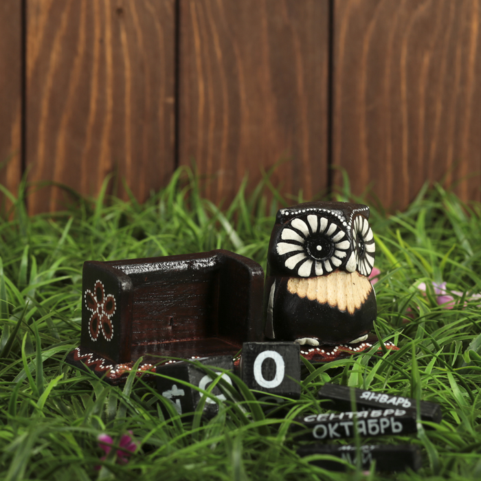 Вечный календарь настольный «Сова с большими глазами», 15×5×7.5 см, дерево
