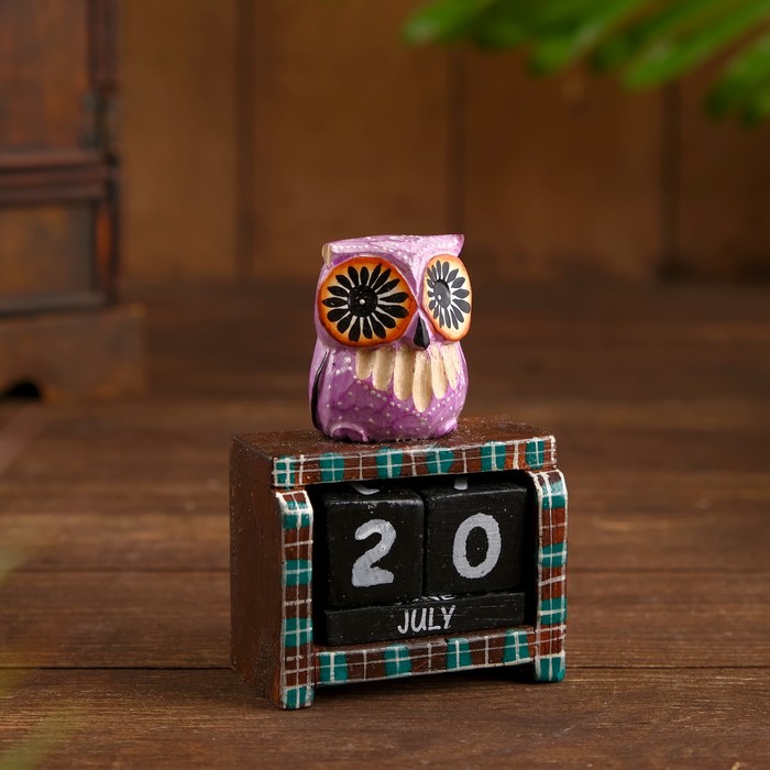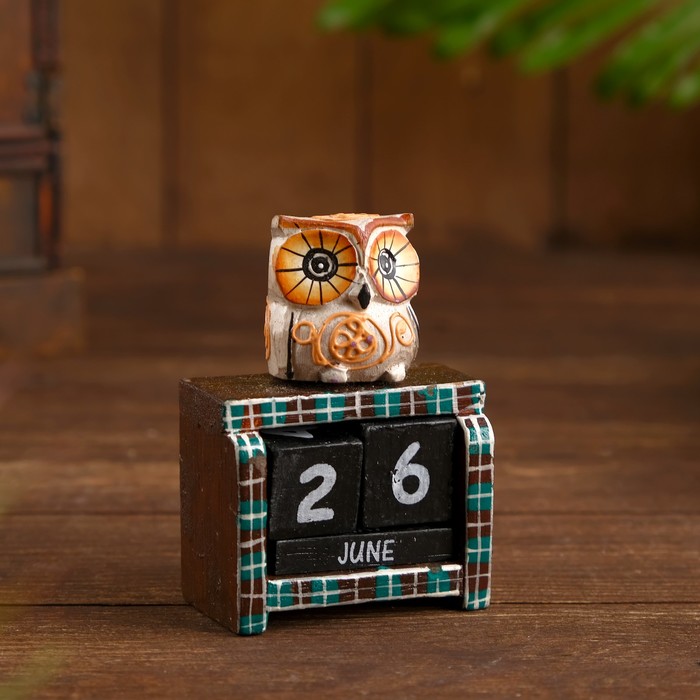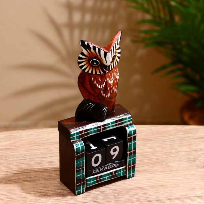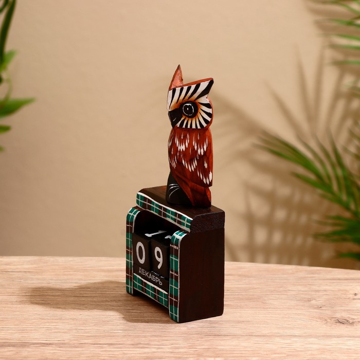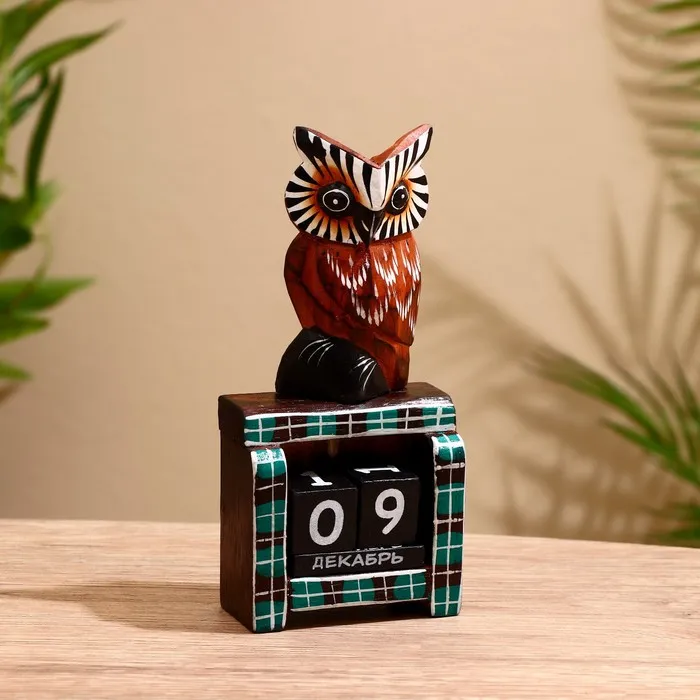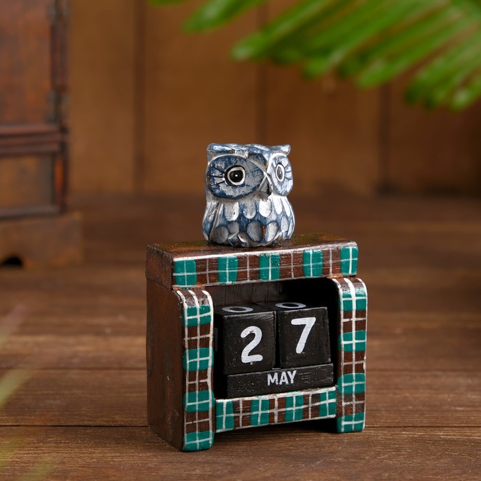 Вечный календарь настольный «Сова у камина», 9.5×4×17 см, дерево, МИКС — Характеристики
