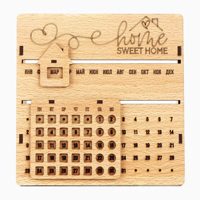 Вечный календарь Sweet home деревянный, 17.5×17 см — Характеристики