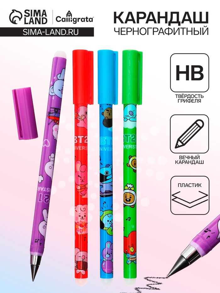 Этот вечный карандаш с рисунком — практичный выбор для школы, который не жертвует индивидуальностью. Утолщённый корпус, встроенный ластик и грифель, не требующий заточки, решают основные проблемы ученика, а яркий декор делает инструмент личным и узнаваемым.