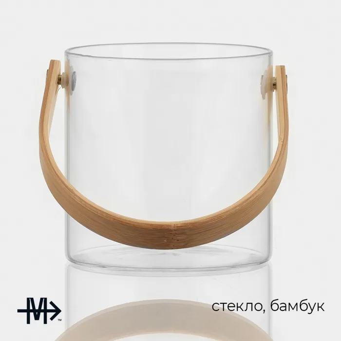 Ведро для льда Magistro «Каиллин», 600 мл, d=10 см, с бамбуковой ручкой, стекло, прозрачное — Характеристики