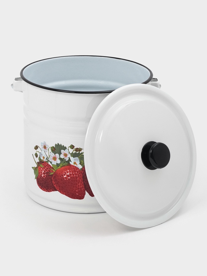 - Удобство в использовании: ручка обеспечивает комфортный хват даже при полной загрузке. Крышка защищает содержимое от пыли и посторонних запахов — идеально для хранения воды, молока, рассола или урожая с огорода.