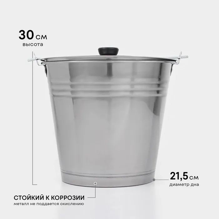 Ведро из нержавеющей стали с крышкой, 12 л — Характеристики