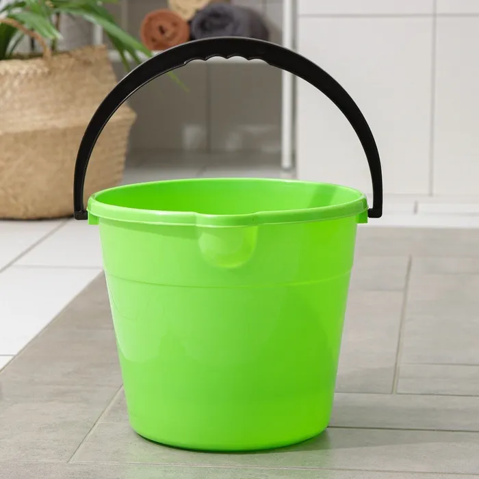 Ведро хозяйственное, 10 л, d=28 см, h=24 см, со сливом, пластик, салатовое/зелёное