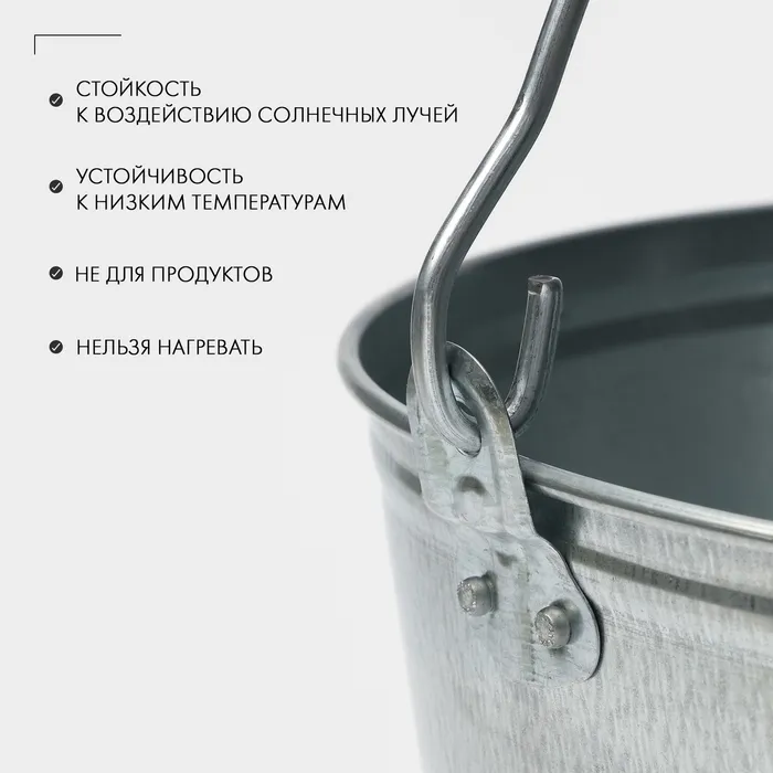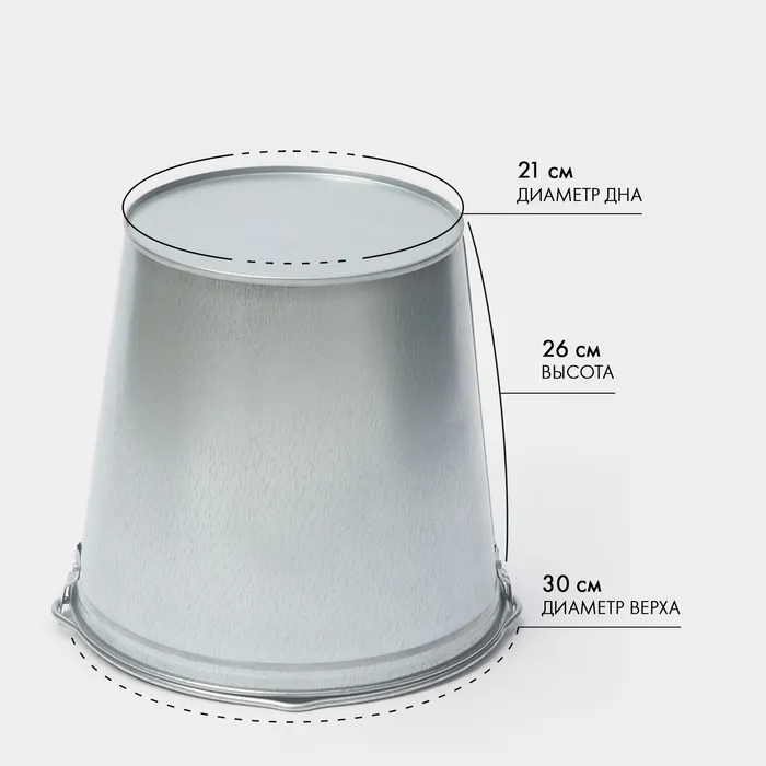Ведро хозяйственное оцинкованное с ручкой, 12 л, d=30 см, h=26 см, ГОСТ — Характеристики