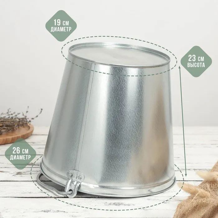 Ведро хозяйственное оцинкованное с ручкой, 9 л, d=26 см, h=23 см, ГОСТ — Характеристики