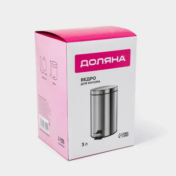 Ведро мусорное с педалью Доляна, 3 л, нержавеющая сталь, хромированное — Характеристики