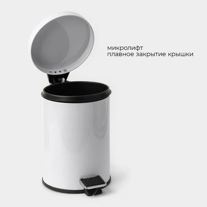 Объем в 3 литра делает его идеальным дополнением для кухни, ванной или рабочего кабинета. Благодаря цилиндрической форме и чистому белому цвету, ведро легко вписывается в любую обстановку, а его лаконичный дизайн будет гармонировать с различными стилями интерьера.