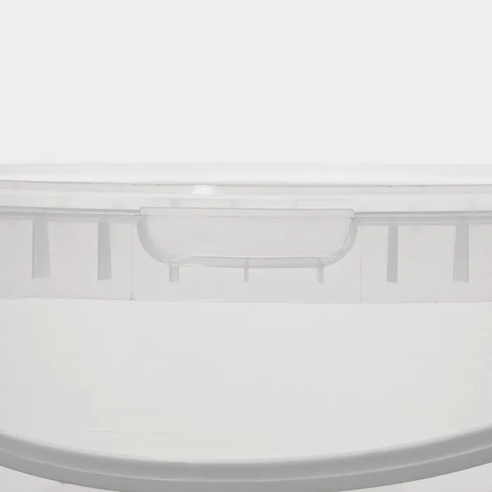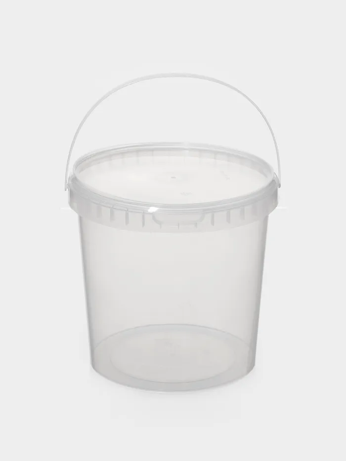 Прозрачное пластиковое ведро с крышкой и ручкой идеально подходит для хранения и переноски пищевых продуктов. Объем 2,8 литра позволяет удобно хранить соленья, маринады и другие заготовки. Цилиндрическая форма обеспечивает удобство использования.