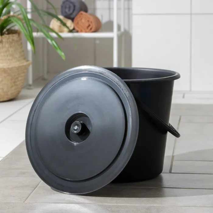 Ведро с крышкой «Дачное», 10 л, d=30 см, h=25,5 см, пластик, чёрное — Характеристики