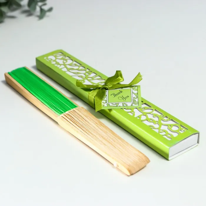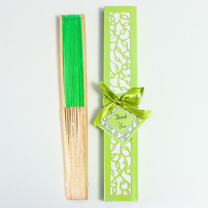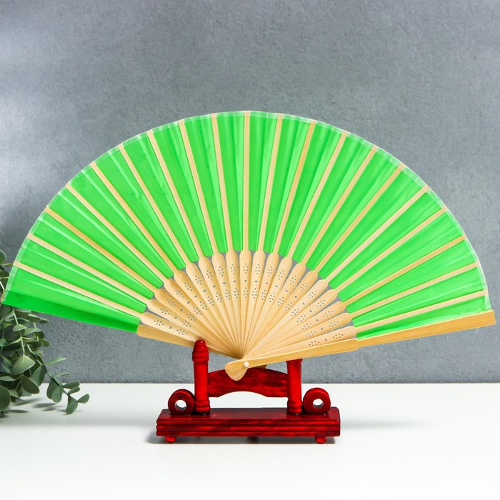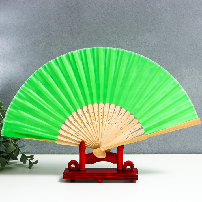 Веер бамбук, текстиль h=21 см "Моноцвет" в коробке, зелёный — Характеристики