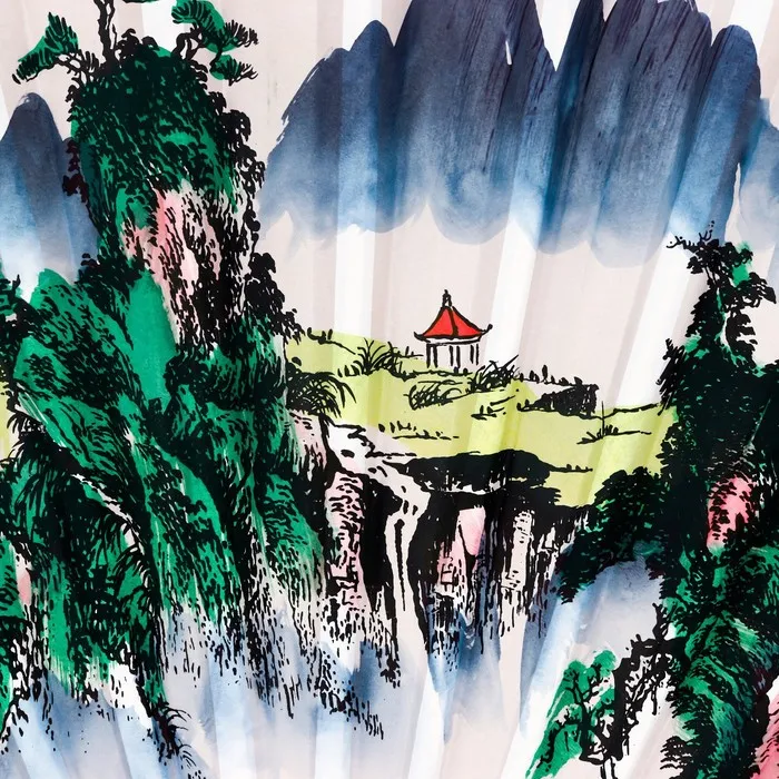Веер бамбук, текстиль h=90 см "Река и горы" белый — Характеристики