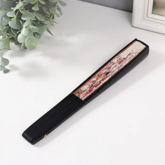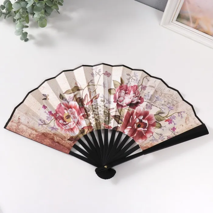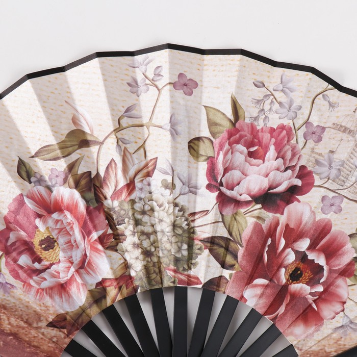 Веер пластик, текстиль h=26,5 см "Розовые цветы на светлом фоне" — Характеристики