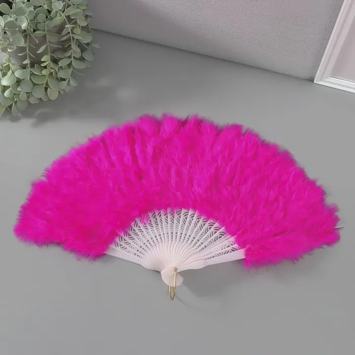 Веер складной «Фуксия», пластик, перо, h=26 см 25 лопастей, 3×46×26 см