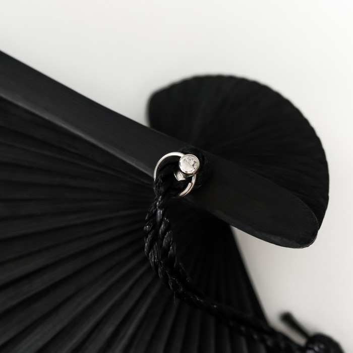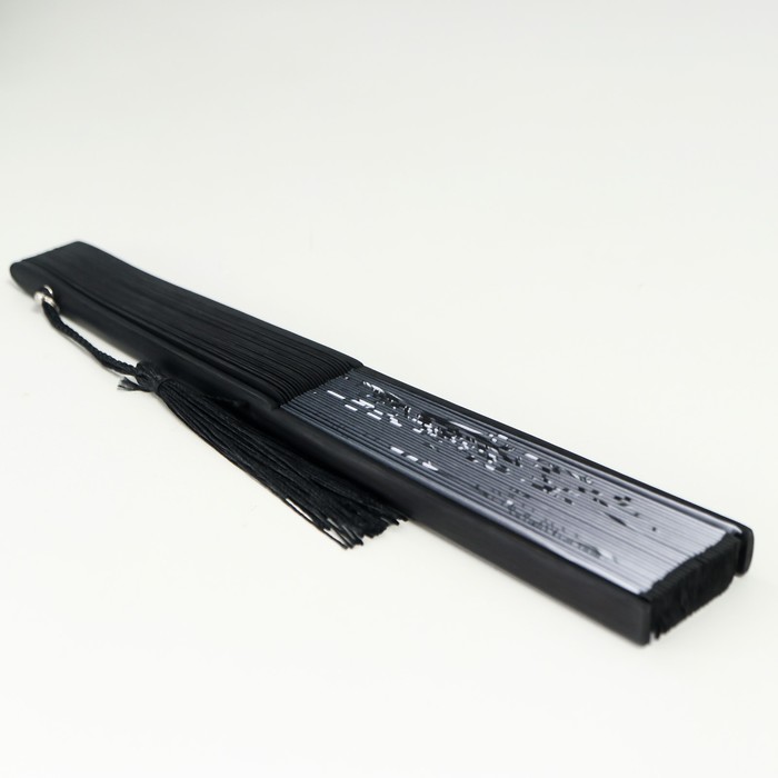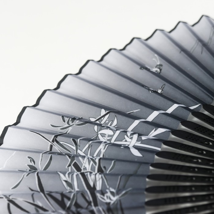 Веер складной h=21 см «Бабочки в траве», бамбук, текстиль, чёрно-белый, с кисточкой — Характеристики
