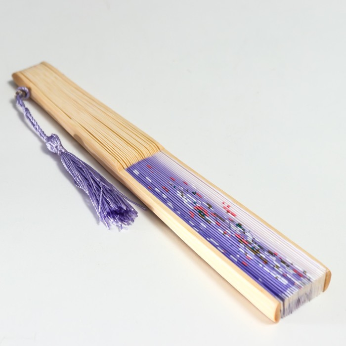 Веер складной h=21 см «Лепестки», сиреневый, с кисточкой — Характеристики