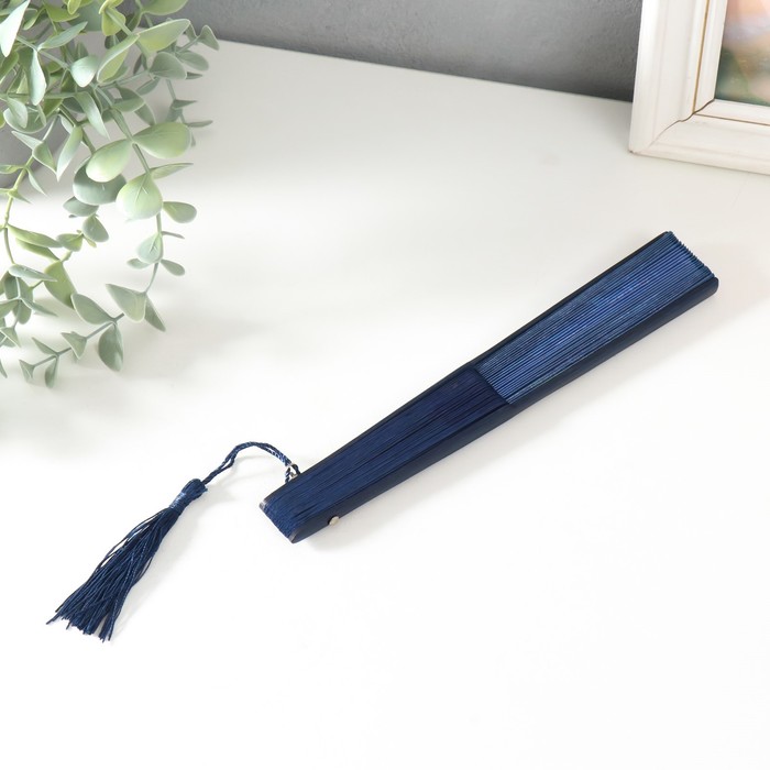 Веер складной h=21 см «Синии лилии и бабочки», синий, с кисточкой