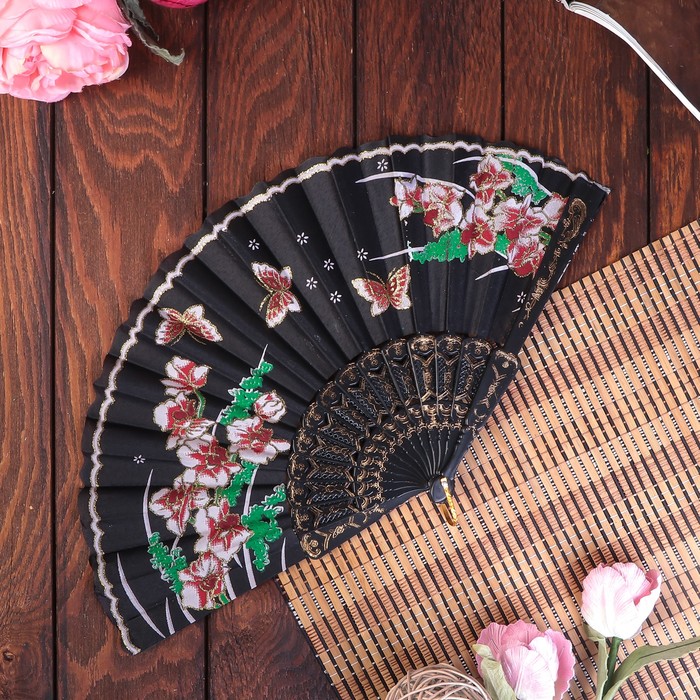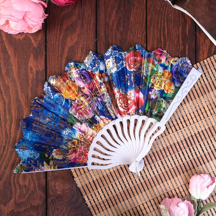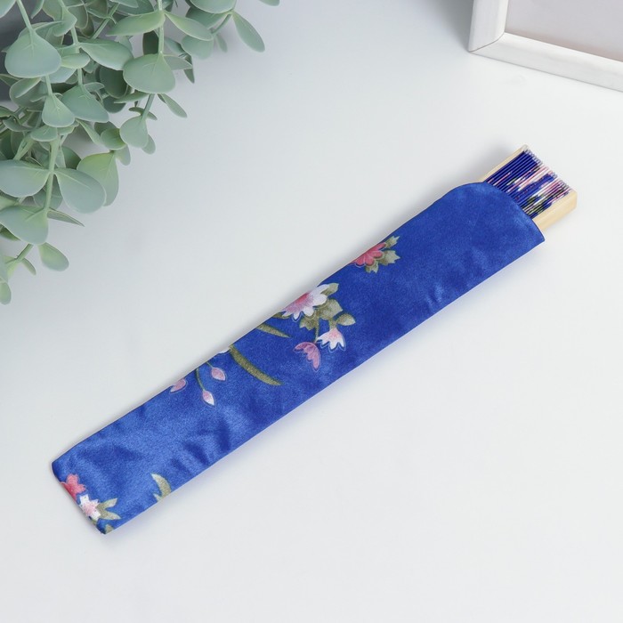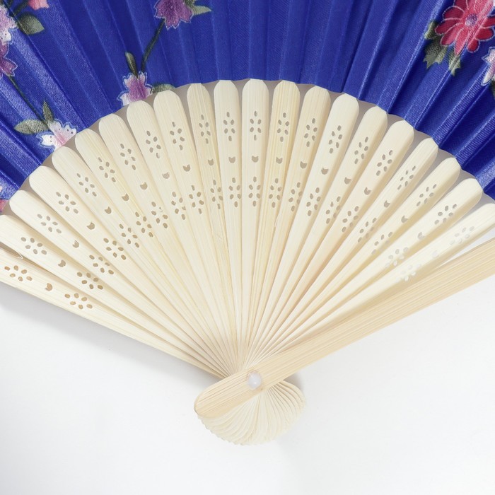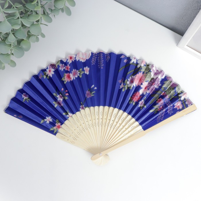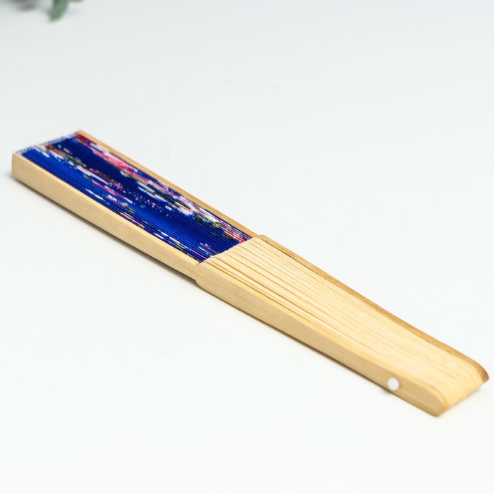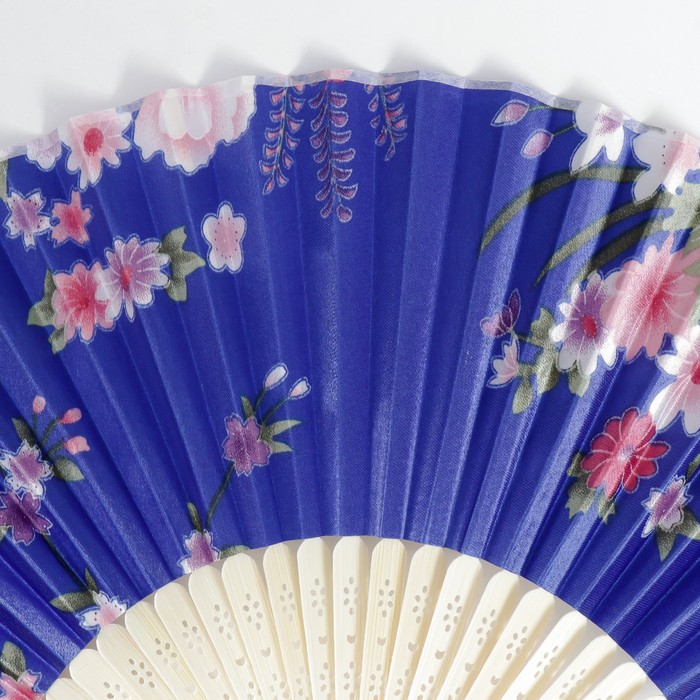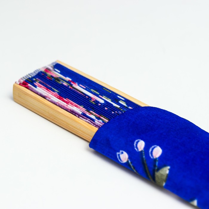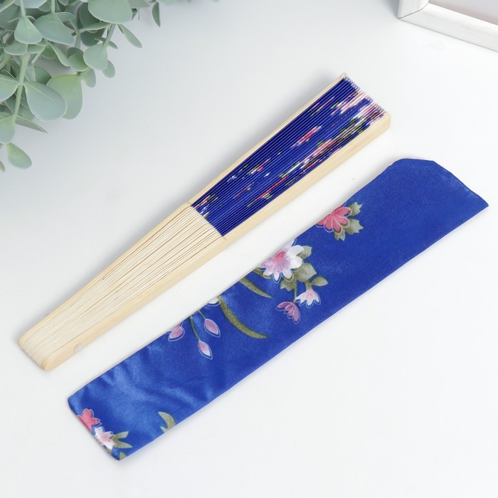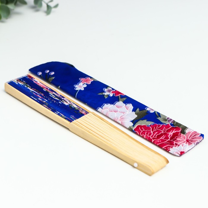 Веер складной h=21 см «Цветы», с чехлом, синий — Характеристики