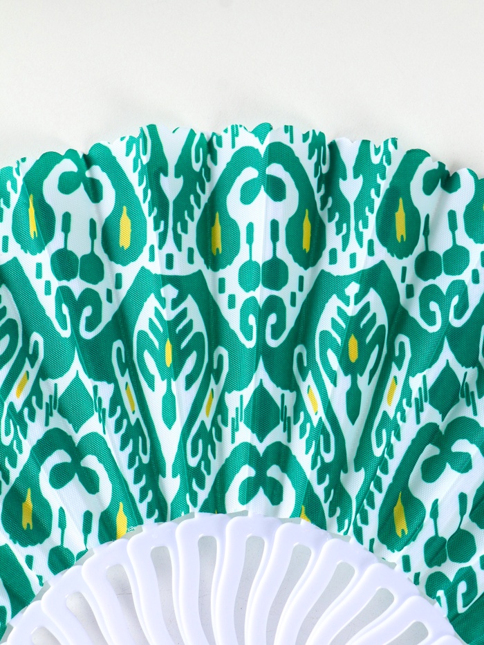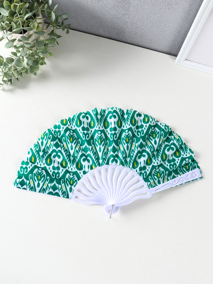 Этот складной веер с орнаментом — элегантный спутник для жаркого дня. Его удобно взять с собой в театр, на прогулку или в путешествие.