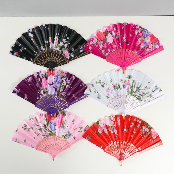 Веер складной «Синий рисунок на белом», 23 см, МИКС — Характеристики