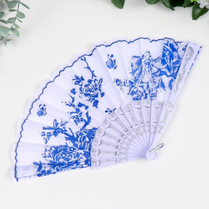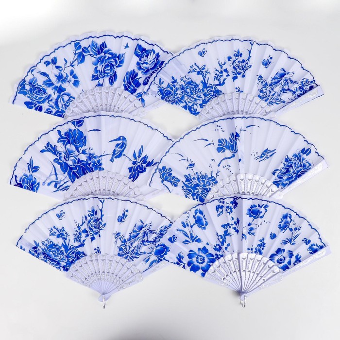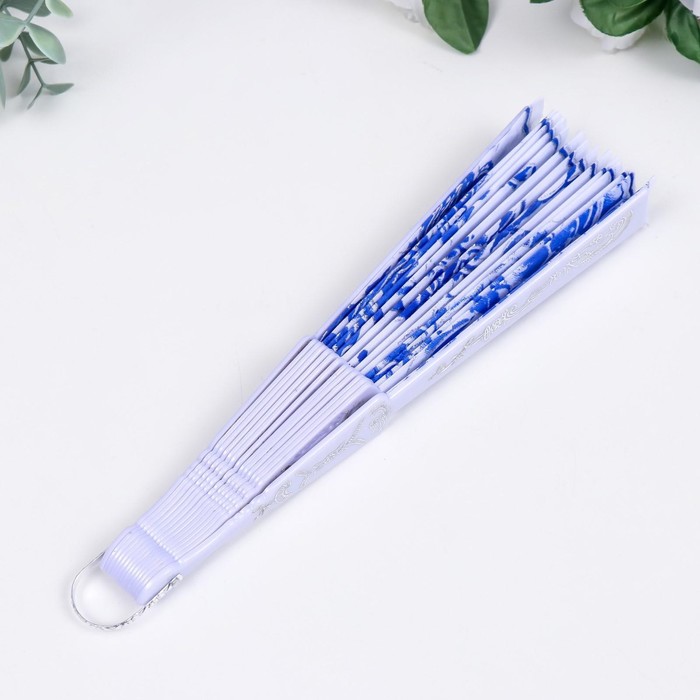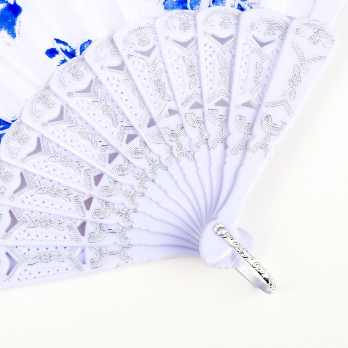 Веер складной «Синий рисунок на белом», 23 см, МИКС — Характеристики