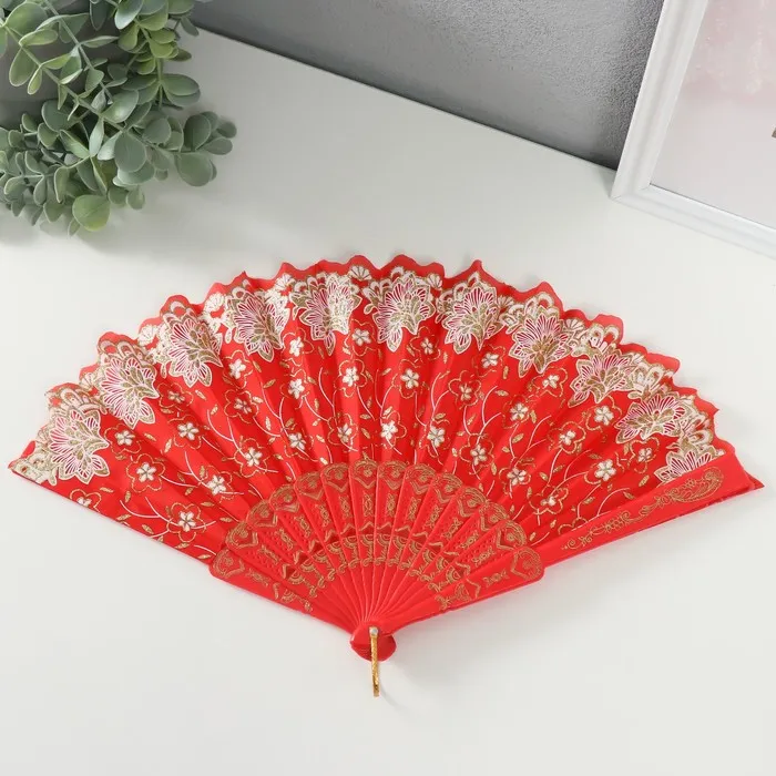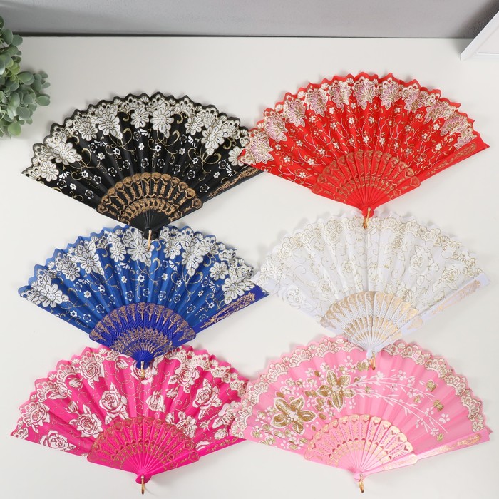 Веер складной «Цветы с блёстками», 23 см, МИКС — Характеристики