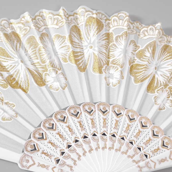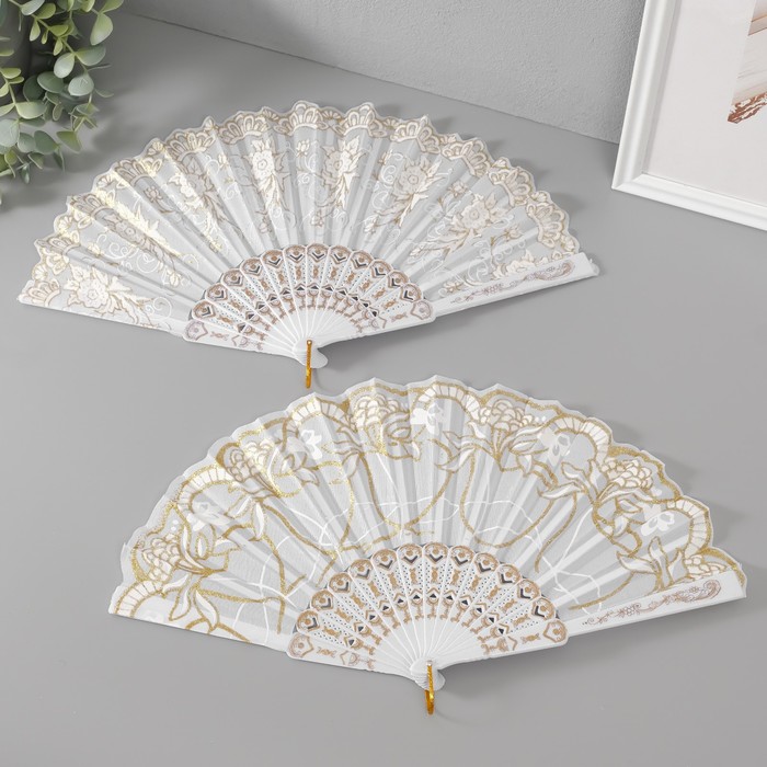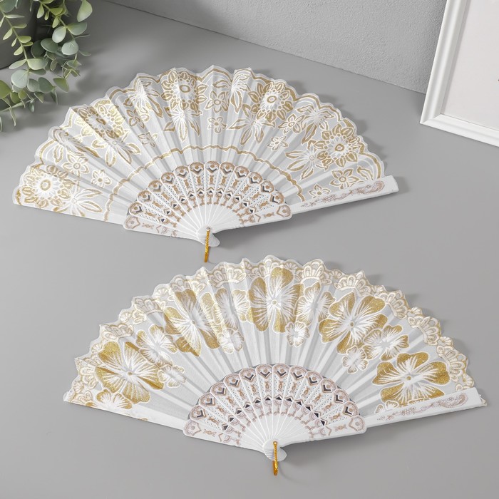 Веер складной «Золотые узоры», пластик, текстиль, блёстки, 22.5 см, МИКС — Характеристики