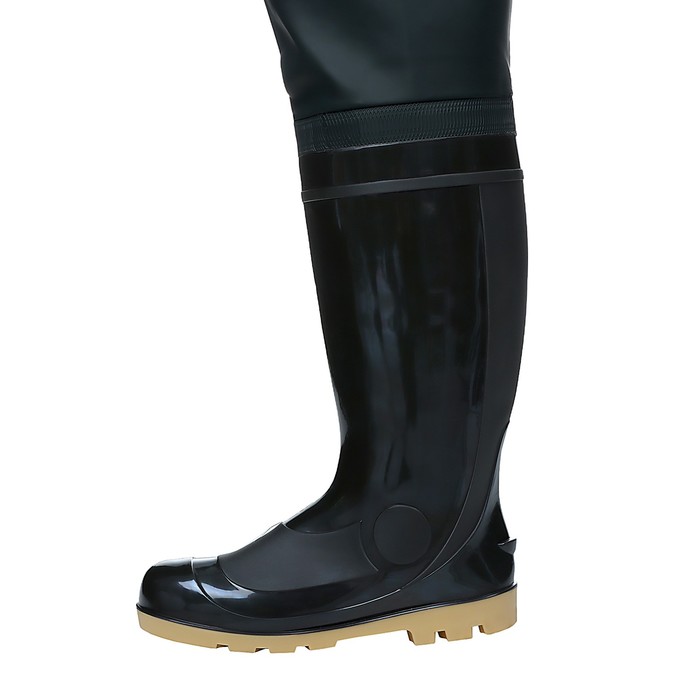 Сапоги забродные из ПВХ предназначены для защиты от воды. Нижняя часть сапог выполнена методом двухкомпонентного литья из ПВХ. Верхняя часть – из водоотталкивающей ткани винитол. Забродные сапоги имеют внутренний нагрудный карман.