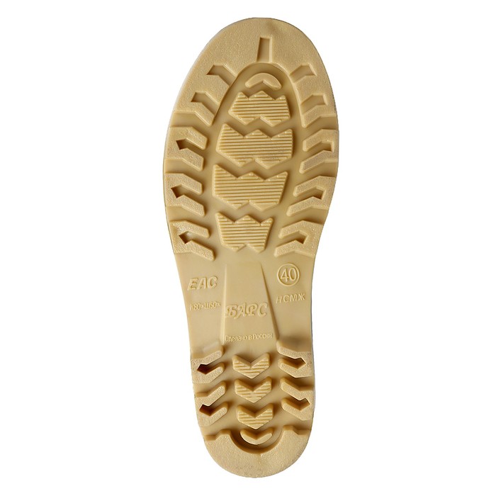 Подошва маслобензостойкая и кислотощелочестойкая, имеет протектор подошвы с выраженным рельефным рисунком, высота профиля протектора подошвы – 5мм, высота профиля протектора каблука - 10 мм, стойкая к истиранию, предотвращает скольжение на любых видах грунта и зажиренных поверхностях. Удобная форма колодки способствует длительной и комфортной носке. В пяточной части находится шпора для удобства снятия.