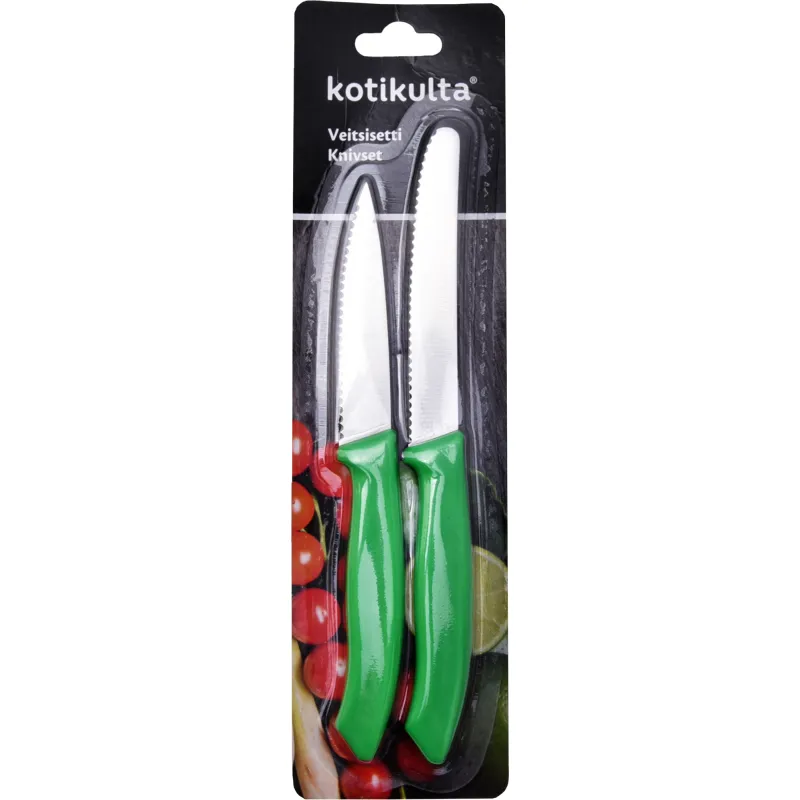 Набор ножей Kotikulta – это отличный помощник для повседневных кулинарных задач. В комплект входят нож для томатов и нож для чистки. Лезвия ножей изготовлены из нержавеющей стали, а удобные пластиковые ручки обеспечивают надежный хват.