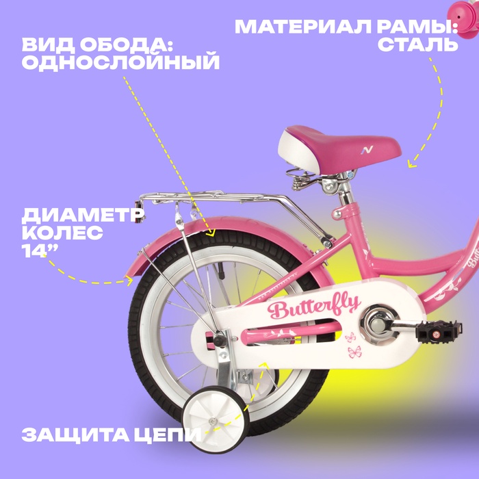 Велосипед 14" Novatrack BUTTERFLY, цвет розовый — Характеристики