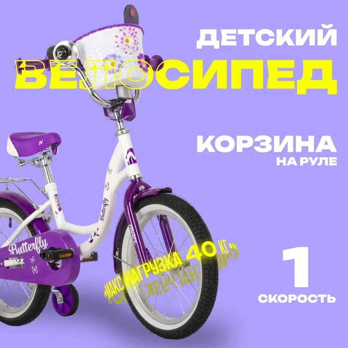Велосипед 16" Novatrack BUTTERFLY, цвет белый/фиолетовый — Характеристики