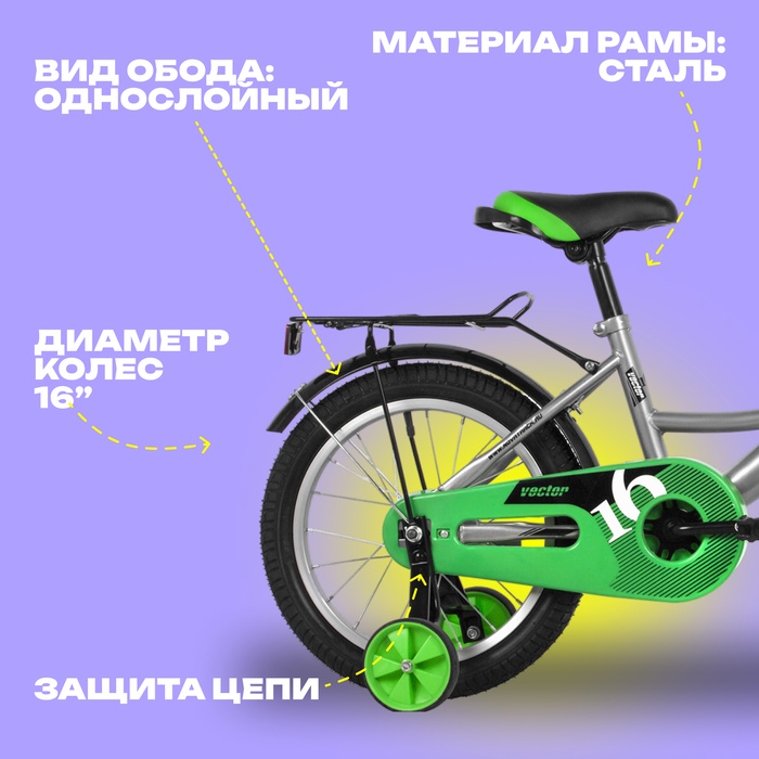 Велосипед 16" Novatrack VECTOR, цвет серебристый — Характеристики
