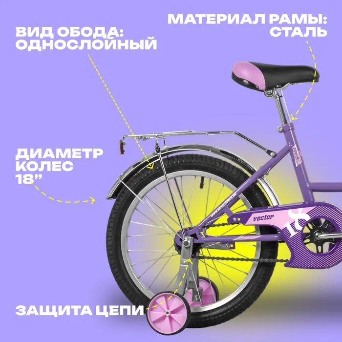 Велосипед 18" Novatrack VECTOR, цвет фиолетовый — Характеристики