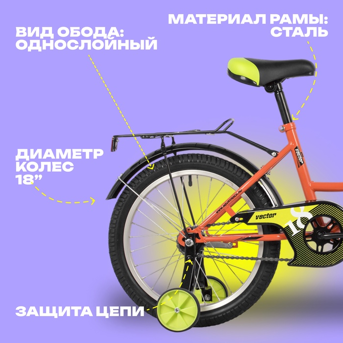 Велосипед 18" Novatrack VECTOR, цвет оранжевый — Характеристики