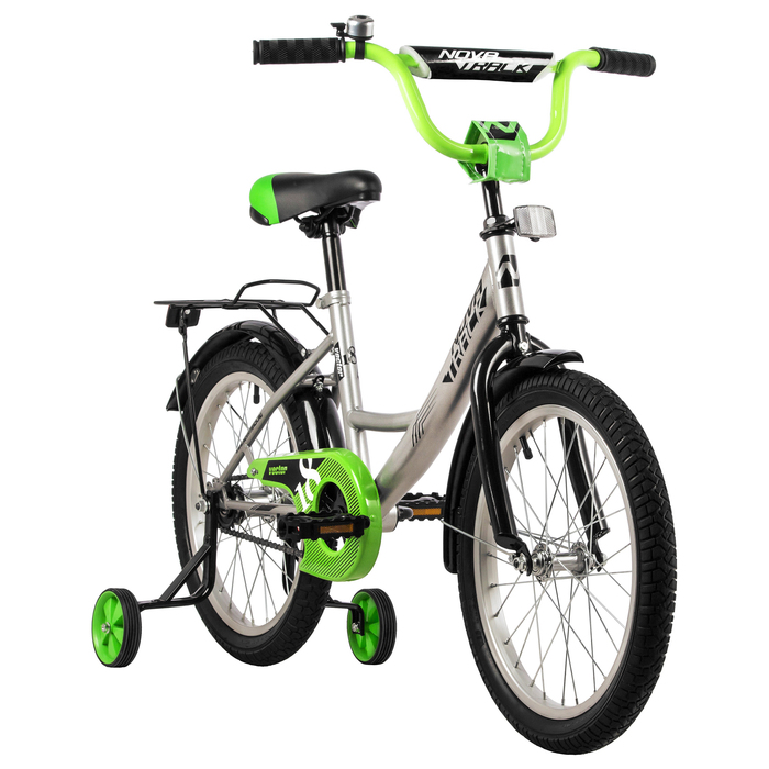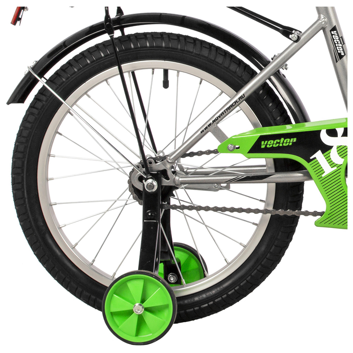 Детский велосипед Novatrack Vector подойдёт для активных поездок и обучения. Модель оснащена съёмными боковыми колёсами, звонком и багажником. Защита цепи предохраняет её от попадания одежды.