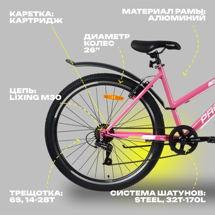 Велосипед 26" PROGRESS Ingrid Low RUS, цвет розовый, р. 15" — Характеристики